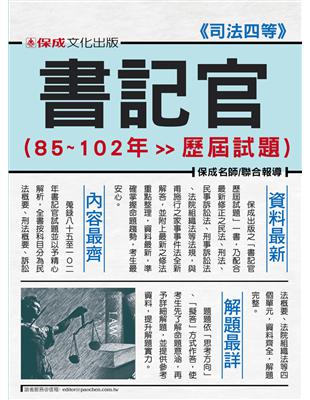 書記官歷屆試題. 85-102年 by: 保成名師 (書目-語言資料,印刷品) , [聯著]